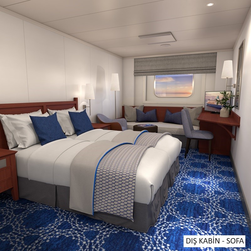 Discovery'de konaklama, gemideki her misafir için benzersiz bir deneyim sunmak üzere tasarlanmış olup lüks ve konforun cennetinde yolculuk yapacaksınız. İçeri adım atar atmaz saf bir rahatlama ortamı yaratan, zarif mobilyalarla süslenmiş, zevkli bir şekilde dekore edilmiş alanlarla karşılaşacaksınız. Konforlu nevresimlere gömülün, nefes kesen okyanus manzaralarına hayran kalın ve sizi çevreleyen huzurun tadını çıkarın. İster rahat bir iç kabin ister geniş bir süit seçin, Celestyal Discovery her tercihe uygun, dinlendirici ve yenileyici bir konaklamayı garanti eden çeşitli konaklama seçenekleri sunar. Her şeyin merkezinde olağanüstü ödüllü hizmetimize olan bağlılığımız yer alıyor. Kendini işine adamış personelimiz, her misafir için unutulmaz bir deneyim yaratma konusunda tutkulu olup, sizin sağlığınızın en büyük önceliğimiz olmasını sağlar. Gemiye adım attığınız andan itibaren sıcaklık, lüks ve özenli bakım atmosferiyle sarmalanacaksınız.